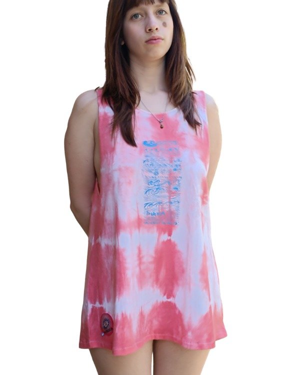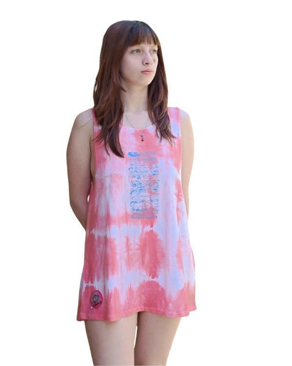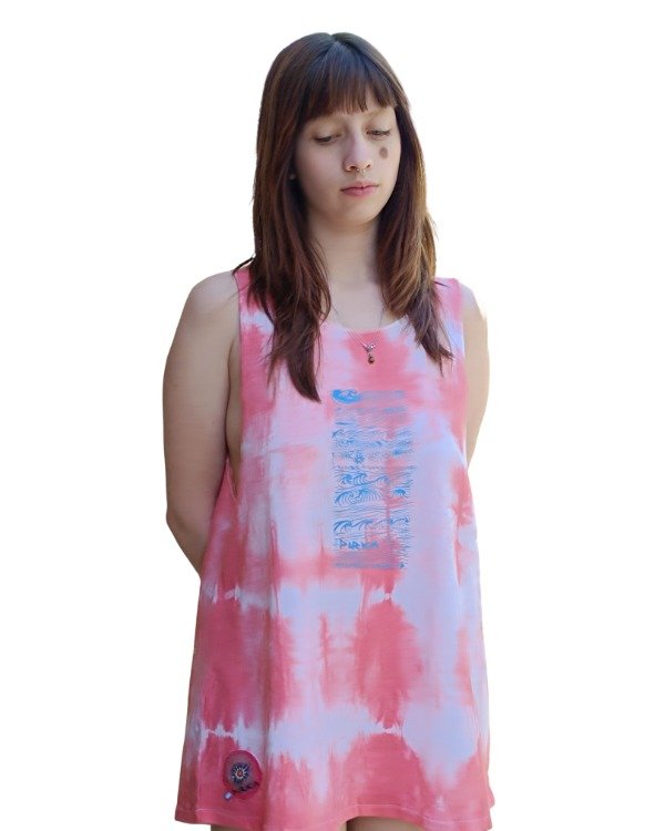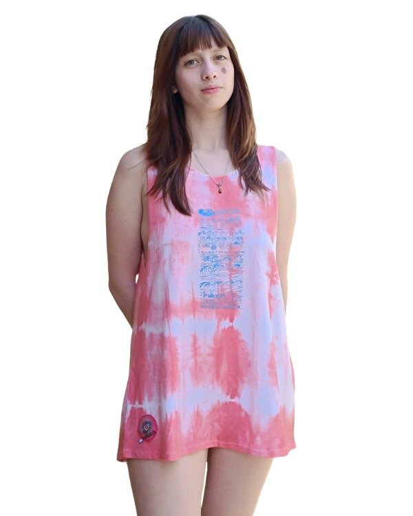 Confeccionado en algodón suave, combina comodidad y estilo en una silueta suelta que se adapta a tu ritmo. El estampado batik en tonos coral y blanco le da un toque artesanal único —cada prenda es distinta, como vos.